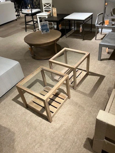 2 Lyons glass top Bunching Tables